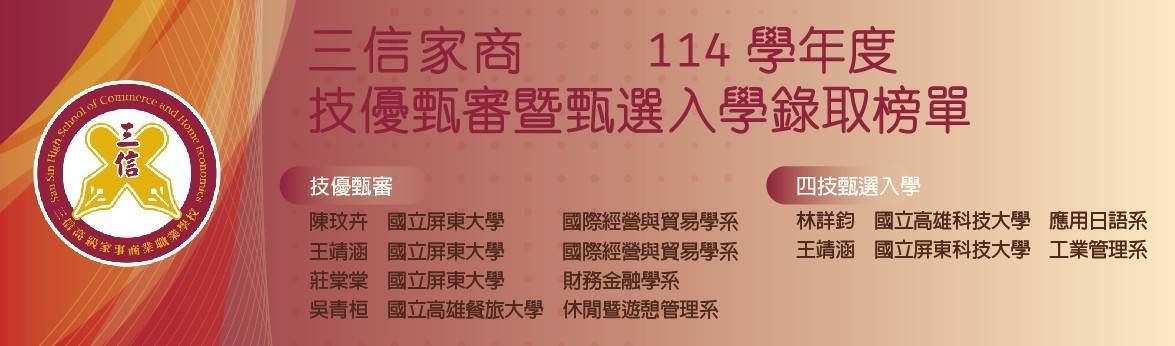 三信家商技優甄審暨甄選入選佳績